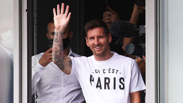 Бывший футболист каталонской "Барселоны" Лионель Месси, который прилетел в Париж для подписание контракта с местным "ПСЖ", поприветствовал фанатов парижан.