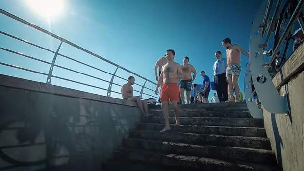Зеленский окунулся в море в ярких алых плавках. Вместе с ним купались сотрудники его администрации.