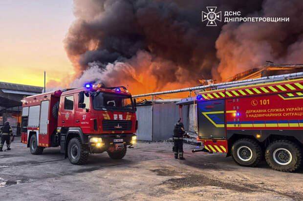 Из-за ударов по востоку Украины в Павлограде загорелось предприятие. Об этом сообщает в Telegram-канале Госслужба республики по чрезвычайным ситуациям.