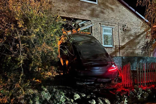 На кадрах с места происшествия видно, что черный кроссовер Mercedes-Benz проломил кирпичную стену дома, выбил окна и повис в образовавшемся проломе. Передняя часть машины оказалась в помещении. Ее задние колеса остались на земле. При этом у автомобиля была включена аварийная сигнализация.