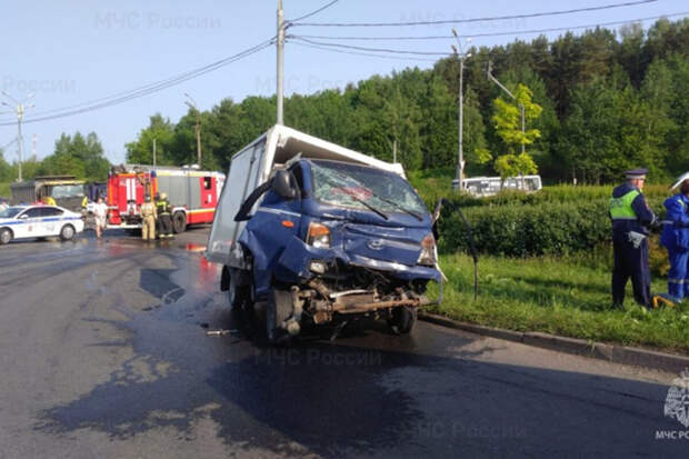 Авария произошла утром в субботу на пересечении Волковского шоссе и улицы Мира, после ДТП движение на автодороге было затруднено.