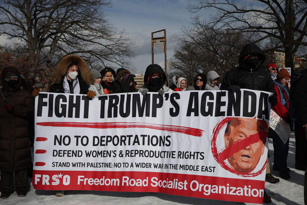 "За выходные в США было запланировано более 1000 демонстраций против иммиграционной и таможенной полиции (ICE) после убийства иммиграционным агентом женщины из Миннеаполиса Рене Николь Гуд", - говорится в материале.