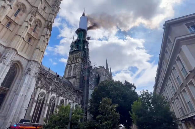 Во Франции загорелся шпиль Руанского собора. Пожар начался во время строительных работ на высоте 120 м. Власти эвакуировали находившихся в здании и попросили местных жителей держаться подальше от места происшествия. Жемчужину готической архитектуры тушат более 100 пожарных и несколько десятков единиц спецстехники.