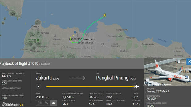 Самолет выполнял рейс JT-610 из Джакарты в индонезийский город Панкалпинанг на острове Банка и пропал с радаров через 10 минут после взлета. На борту авиалайнера находились 189 человек. Ведется поисково-спасательная операция.