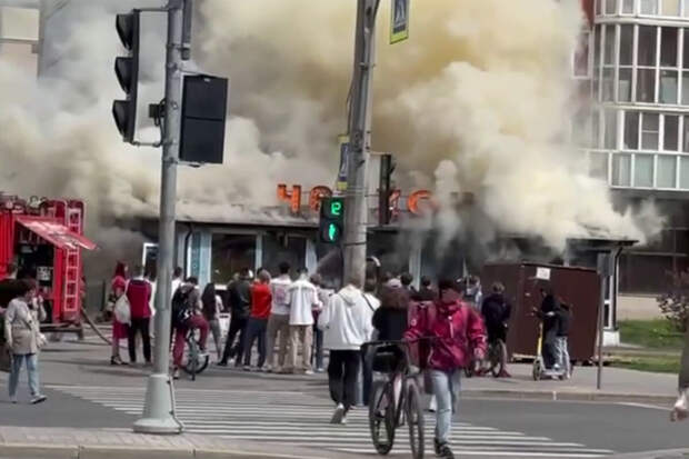 По информации министерства, пожар произошел в Приморском районе на Богатырском проспекте 55 корпус 1. В ресторане восточной кухни загорелась площадь в 60 квадратных метров. На кадрах с места происшествия видно полыхающее здание и мощный столб дыма, поднимающийся вверх.