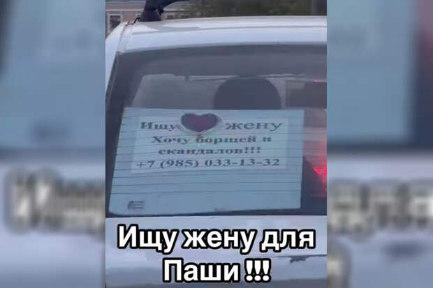 "Ищу жену. Хочу борщей и скандалов", - сказано в сообщении, размещенном на заднем стекле автомобиля.