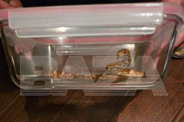 До их прибытия москвичка нашла на кухне стеклянный контейнер для еды и накрыла им змею.Откуда взялась рептилия, неизвестно. Отмечается, что никто из соседей не держит змей. Прочие детали и обстоятельства не уточняются.