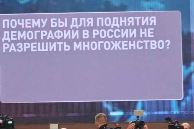 На прямой линии с президентом РФ Владимиром Путиным на экран вывели вопрос о том, почему в России не разрешат многоженство для повышения рождаемости. Как заявила "Газете.Ru" в ответ на него председатель комитета Госдумы по защите семьи, вопросам отцовства, материнства и детства Нина Останина, многоженство нарушает статьи Конституции о браке и традиционные ценности.