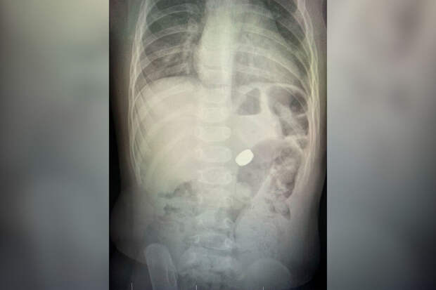 После этого взрослые не досчитались одной батарейки из комплекта.Медики направили младенца на рентген, который показал наличие инородного тела в брюшной полости. С помощью эндоскопа под общим наркозом врачи удалили у ребенка батарейку из желудка. Медики установили, что пациент получил электрохимический ожог желудка.