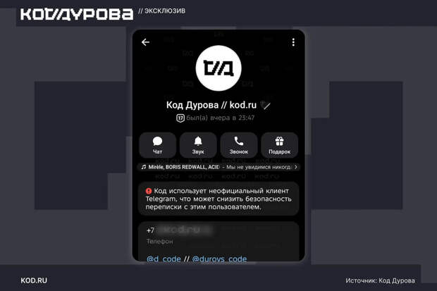 Кроме того, в Telega обнаружено использование дополнительного RSA-ключа, отсутствующего в официальных клиентах, а также блокировка контента и скрытие секретных чатов. Эти факторы, по оценке экспертов, могут представлять потенциальную угрозу конфиденциальности пользователей.