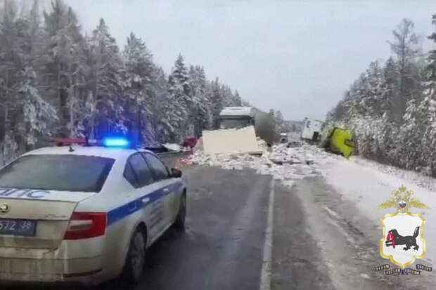 "По предварительной информации, водитель большегруза "Volvo", двигавшийся со стороны Красноярска в направлении Иркутска, не справился с управлением, допустив занос прицепа на встречную полосу, где произошло столкновение с тягачом Freightliner, в результате которого из прицепа фуры выпали коробки с грецкими орехами", - говорится в сообщении.