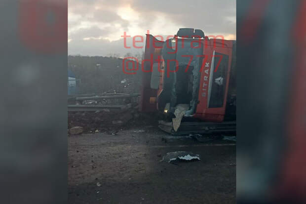Инцидент произошел на 39 километре Новорязанского шоссе в районе села Михайловская Слобода. Судя по фото, большой трехосный грузовик Sitrak опрокинулся на бок. У него разбито лобовое стекло.