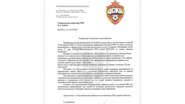 " В ЦСКА их охарактеризовали как "высказывания за гранью этических норм".В Twitter красно-белых в ответ на обращение ЦСКА появилась фотография, на которой смеются главный тренер команды Доменико Тедеско и футболисты Алекс Крал и Джордан Ларссон.