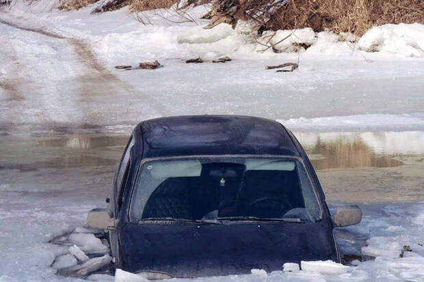 Несовершеннолетние пассажиры и водитель машины травм не получили. На место происшествия прибыли спасатели, которые эвакуировали людей из салона автомобиля.На опубликованной в сети фотографии видно, что черная машина наполовину погрузилась под воду, а лед под ней треснул.