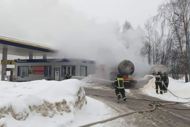 В материале подчеркивается, что двум мужчинам — водителю грузовика и кассиру АЗС — потребовалась госпитализация. Они получили сильные ожоги.