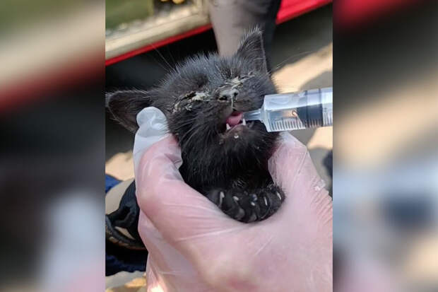 Котенка осмотрели ветеринары, которые выявили у него перегрев и истощение. Сейчас ему оказывают всю необходимую помощь, животное в тяжелом состоянии. Его назвали Марио.