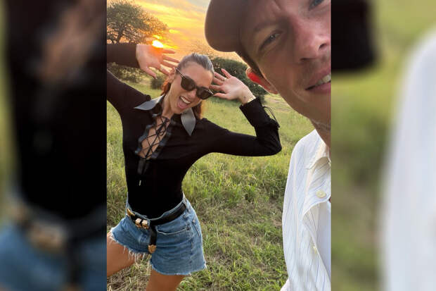 Певица Дуа Липа в боди со шнуровкой съездила на сафари с женихом, актером Каллумом Тернером. Знаменитость поделилась фото в Instagram.