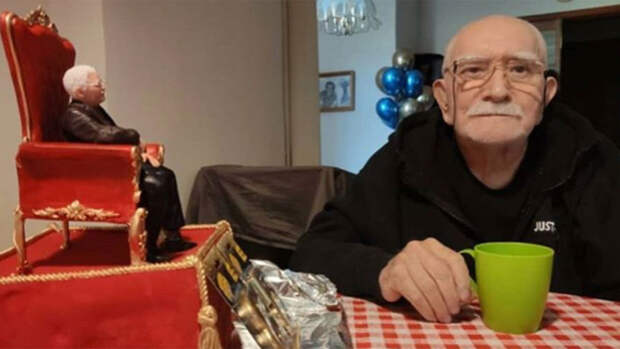 Снимок был сделан 3 октября 2020 года - в день рождения актера. На фото Джигарханян сидит за столом с кружкой чая, на столе стоит торт, изображающий артиста в "парадном" красном кресле. "Дома после празднования 85-летнего юбилея в родном театре", - подписал кадр Степан.