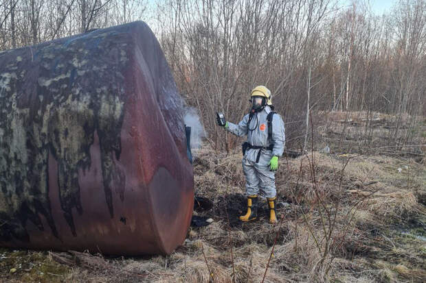 На месте происшествия поисково-спасательная группа отдела химзащиты АОСС (архангельская областная спасательная служба) обнаружила тление вещества в горизонтальной стальной емкости объемом около 18 кубических метров, с вскипанием жидкости и последующим ее затвердеванием.