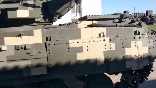 "Внешнее отличие Т-64БМ2 от Т-64БМ "Булат" заключается в выдвинутой части моторно-двигательного отделения. Из-за больших размеров нового двигателя башня у Т-64БМ2 несколько приподнята и защищена барбетом", - пишет канал.