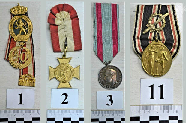 По информации службы, таможенники обнаружили посылку из Германии, в которой находилось 33 немецкие награды. Среди них были стальные браслеты с латунным покрытием и золочением с изображением ордена Железного креста, медали "За Ватерлоо", "Покровитель моряков", "В память о Первой мировой войне", "Ветеран Первой мировой войны", знаки отличия воинских товариществ и другие.