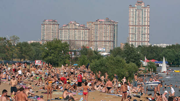 23 июня в Москве был установлен новый температурный максимум июня — днем воздух в столице прогрелся до +34,8°C. И отступать жара в ближайшие дни не планирует — москвичи спасаются от нее в городских фонтанах, под деревьями в парках и на пляжах местных водоемов.