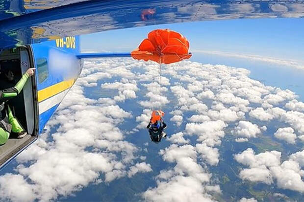 В Австралии парашют мужчины зацепился за хвост самолета во время прыжка, пишет Daily Mail.