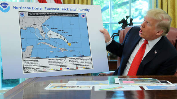 Американские СМИ назвали президента США Дональда Трампа "повелителем ураганов" после того, как политик показал измененную карту "Дориана" во время репортажа по телевидению. Это удар по репутации президента. Однако стоит отметить, что глава страны придает большое значение смягчению последствий стихии и даже отменил из-за нее поездку в Европу, памятуя о своем проколе двухгодичной давности.