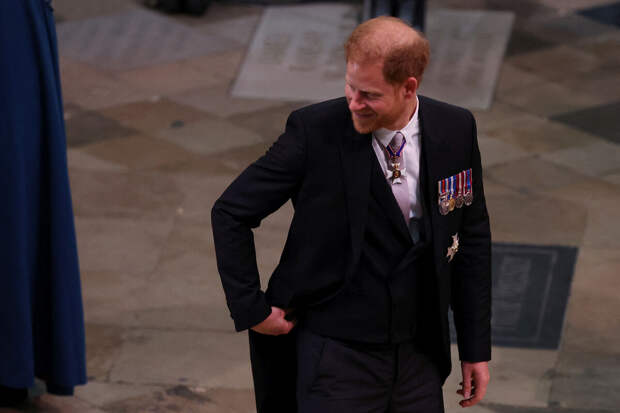 Как и ожидалось, принц Гарри появился на коронационной службе один. Его супруга Меган Маркл вместе с детьми, 4-летним Арчи и годовалой Лилибет, осталась в США.