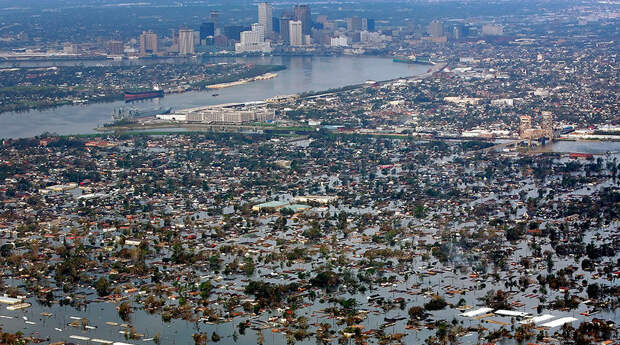 Густонаселенный портовый город в штате Луизиана Новый Орлеан был полностью затоплен в результате урагана Катрина в 2005 году.