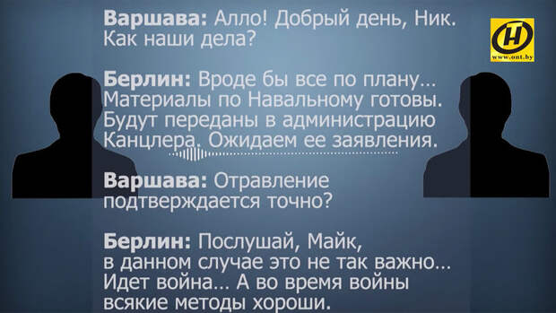 Белорусский государственный телеканал ОНТ обнародовал запись телефонного разговора между якобы представителями Варшавы и Берлина, о которой ранее сообщал президент республики Александр Лукашенко.