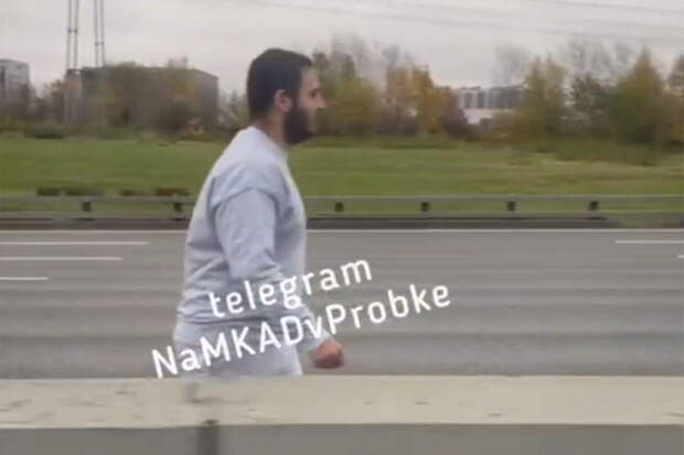Очевидцы запечатлели инцидент. На кадрах видно, как мужчина идет рядом с дорожным ограждением, при этом мимо него проезжает большое количество автомобилей.