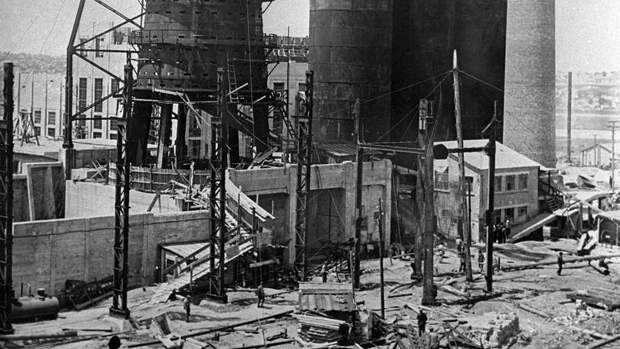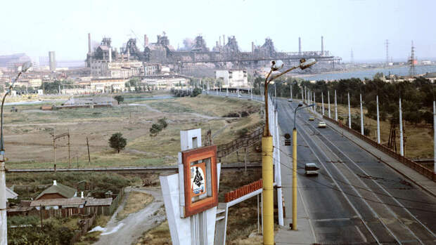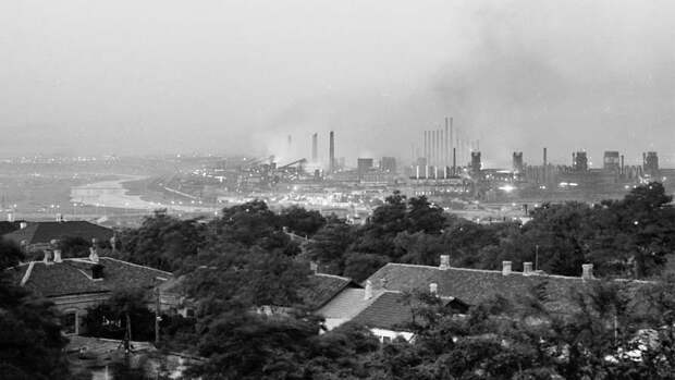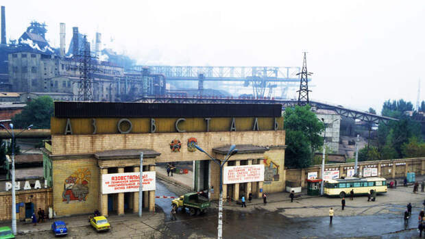 Металлургический комбинат "Азовсталь" начал работать в начале 1930-х, в ходе ВОВ был оккупирован, в ходе отхода солдат вермахта — подорван.