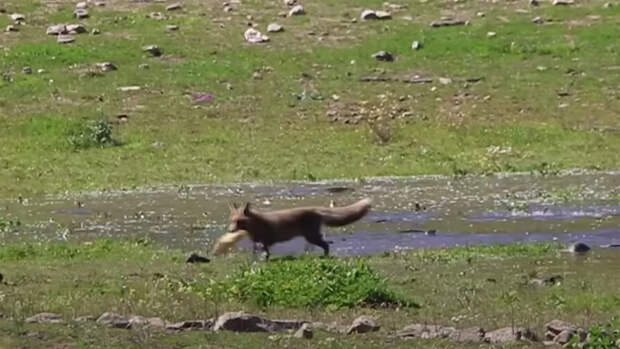 Видеоловушка зафиксировала момент рыбной ловли лисы. Статья об этом опубликована в журнале Ecology.