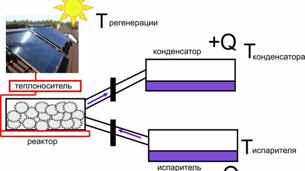 Чтобы подогреть летом на даче воду для душа или сохранить свежими продукты в жаркий день, не обязательно использовать электричество или природный газ. Для бытовых нужд подойдет адсорбционный преобразователь тепла (АПТ). Такие приборы работают благодаря способности пористых материалов-сорбентов взаимодействовать с парами жидкостей-сорбтивов. Насыщаясь паром, сорбент выделяет тепло и, наоборот, поглощает его, когда отдает пар. Свойства сорбентов имеют угли, цеолиты, силикагели. Иногда их заменяют инновационными материалами: композитами типа "соль в пористой матрице", металлоорганическими каркасами, алюмофосфатами. Основные составляющие АПТ – реактор с поглотителем-сорбентом и два резервуара с жидкостью-сорбтивом. Один резервуар служит испарителем, второй – конденсатором. Чтобы запасти энергию, сорбент сушат на солнце. Когда необходимо получить тепло (например, ночью), между резервуаром-испарителем и реактором открывают кран, так что пары сорбтива поступают на сорбент. Сорбент поглощает их, происходит разогрев реактора, и запасенное за день тепло можно использовать. На следующий день сорбент вновь сушат с помощью доступной солнечной энергии, и пары из него поступают в конденсатор. Это пример суточного цикла работы АПТ, но возможен и сезонный цикл, когда энергию запасают все лето и используют зимой. Кроме того, преобразователь тепла может служить источником холода: когда материал-сорбент поглощает пары сорбтива, резервуар-испаритель сильно охлаждается. Этот эффект можно использовать для охлаждения продуктов или кондиционирования помещений. Высушить сорбент можно не только с помощью солнечной энергии. Подойдет любое тепло, например, от работающего двигателя, отработанного промышленного газа, от выхлопных газов автомобилей. Обычно такое тепло рассеивается в окружающей среде без всякой пользы. Но хотя солнечный свет – не единственный источник энергии для АПТ, климатические условия, тем не менее, важны при выборе пары "сорбент-сорбтив". Материал, хорошо накапливающий и отдающий тепло в одной климатической зоне, может оказаться совершенно неэффективным при других температурах. Чтобы выяснить, какие материалы и жидкости подойдут для работы АПТ в российских климатических условиях, новосибирские химики в сотрудничестве с итальянскими коллегами проанализировали около 40 пар "сорбент-сорбтив". Исследователи оценивали возможность использовать их в циклах обогрева, охлаждения и запасания тепла в условиях семи локаций (Астрахань, Москва, Владивосток, Омск, Архангельск, Якутск, Оймякон). Для каждой локации по данным базы METEONORM рассчитали средние температуры дня и ночи для каждого месяца года. Используя эти данные в качестве параметров, авторы определили для каждого цикла (охлаждение, обогрев и запасание тепла) так называемый интервал адсорбционного потенциала Поляни. Его граничные значения позволяют оценить, какое количество сорбтива выбранный сорбент будет обменивать за нужный рабочий цикл. Чем больше сорбтива сорбент может обменять в заданных условиях, тем выше эффективность АПТ. Расчеты помогли подобрать наиболее перспективную для каждого случая пару "сорбент-сорбтив". Например, подходящий для большинства случаев сорбтив – вода, но зимой лучше использовать метанол, так как температура его замерзания ниже нуля. И