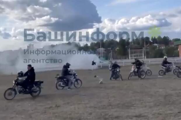 Один из подростков, стоя на пути полицейской машины, применил огнетушитель. В результате этого перед автомобилем образовалось густое белое облако. Другие мотоциклисты и их пассажиры начали в этот момент разъезжаться в разные стороны. Убегая, молодой человек бросил использованный огнетушитель в сторону патрульного автомобиля.На кадрах с места происшествия, опубликованных изданием, видно, что на поле собрались более 10 мотоциклистов. Сотрудники ГИБДД не успели подъехать к ним, так как двигались вдоль ограды.