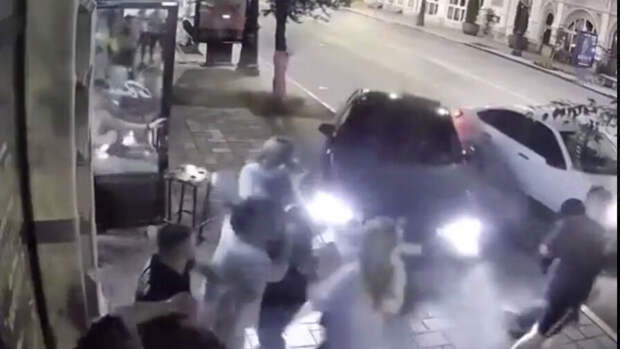 В Самаре автомобиль BMW вылетел на тротуар и едва не врезался в толпу людей, видео с места происшествия появилось в Сети.
