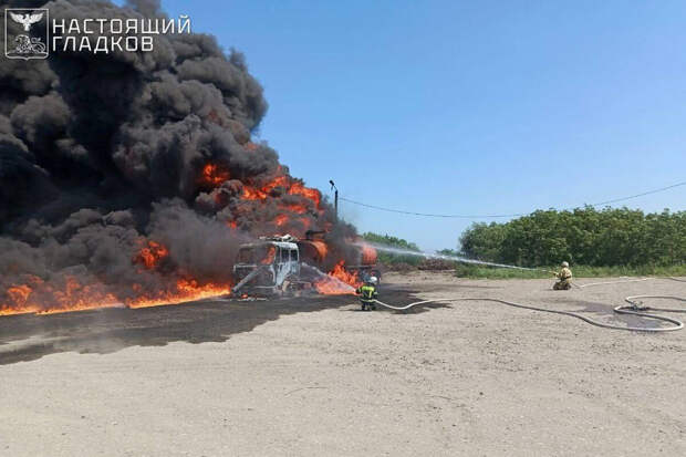 По его словам, на участке дороги Короча — Белгород украинский дрон нанес удар грузовому автомобилю с цистерной.