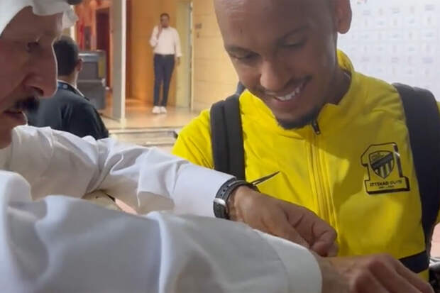 Полузащитник поднял подарок и показал журналисту большой палец.Фабиньо перешел в "Аль-Иттихад" из "Ливерпуля", за который выступал с 2018 года. В текущем сезоне чемпионата Саудовской Аравии Фабиньо принял участие в одном матче, не сумев отметиться результативными действями. По информации портала Transfermarkt, рыночная стоимость Фабиньо оценивается в €42 млн.