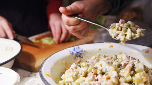 По ее словам, заправлять салаты (майонезом, соусом или маслом) стоит только перед подачей. Кроме того, специалист советует в салаты оливье или "Столичный" не добавлять сразу свежие огурцы и не заправлять майонезом - таким образом салаты смогут сохраниться дольше.
