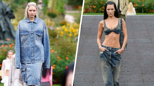 В воскресенье, 2 октября, сестры-супермодели появились на подиуме французского модного дома в джинсовых нарядах. Белла Хадид вышла на шоу в юбке-миди с низкой талией и бюстгальтере из темной ткани, а ее сестра Джиджи в куртке фасона оверсайз и юбке-миди с накладными карманами.