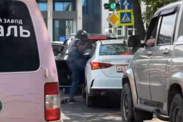 Судя по видео, инцидент произошел в пробке. Байкер открыл дверь автомобиля Hyundai Solaris и начал вытаскивать водителя из салона. Однако тот смог отбиться и захлопнуть дверь машины.