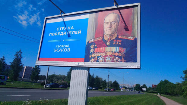 В Санкт-Петербурге изображение четырежды Героя Советского Союза маршала Георгия Жукова разместили на билборде с тремя "Золотыми Звездами" на груди вместо четырех, сообщает "Фонтанка".