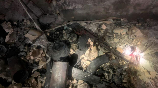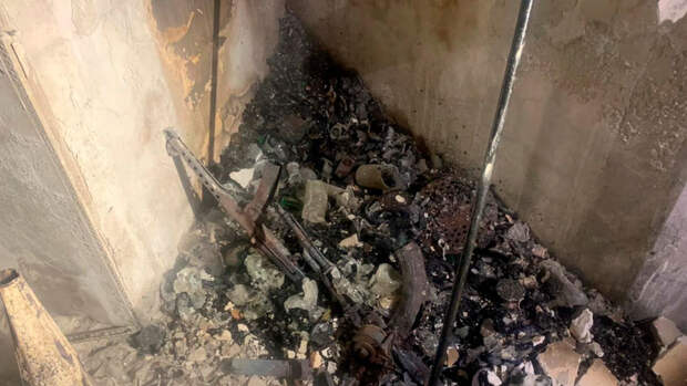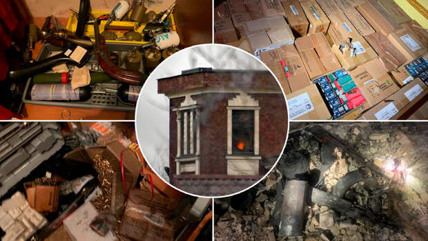 На кадрах показан сам дом, а также найденные внутри боеприпасы, последствия пожара в нескольких комнатах и работа следователей.