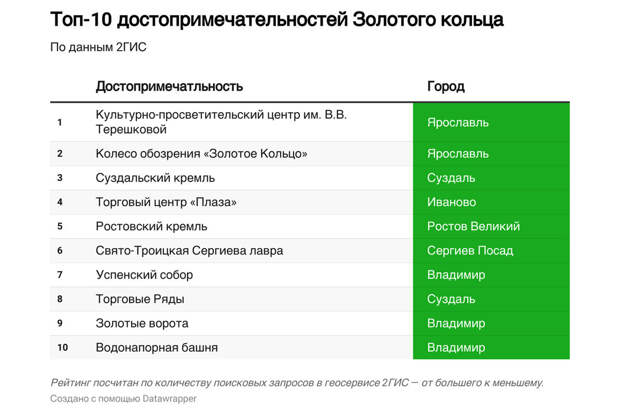 На основе полученных данных эксперты составили рейтинг самых популярных объектов в городах Золотого кольца.
