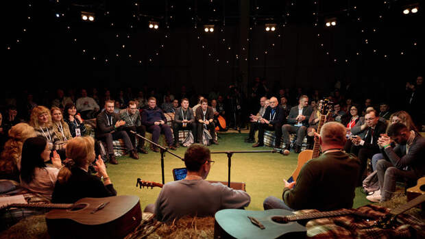 Участники конкурса собрались вокруг импровизированного "костра" и исполняли песни о Донбассе, советскую и российскую классику, а также авторские песни.
