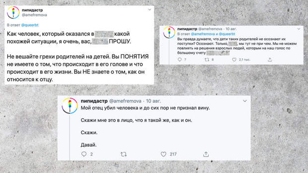 "Как человек, который оказался в похожей ситуации, я очень вас прошу, не вешайте грехи родителей на детей. Вы понятия не имеете о том, что происходит в его голове и что происходит в его жизни", - написала в комментариях Анна Мария.