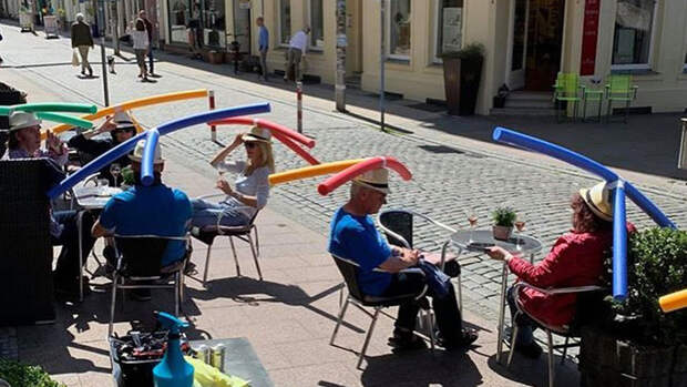В кафе-кондитерской Rothe города Шверина в Германии прибегли к более бюджетному способу отделить гостей друг от друга: в заведении, открывшемся 9 мая, людям предлагают надеть шляпы, к которым пришиты трубки из полиэтиленовой пены, использующиеся для плавания в бассейне. Как заверила владелица кафе Жаклин Роте издание CNN, посетителям дурацкие шляпы с двухметровыми трубками понравились, однако эксперимент показал, как трудно в обычной жизни держать дистанцию друг от друга.