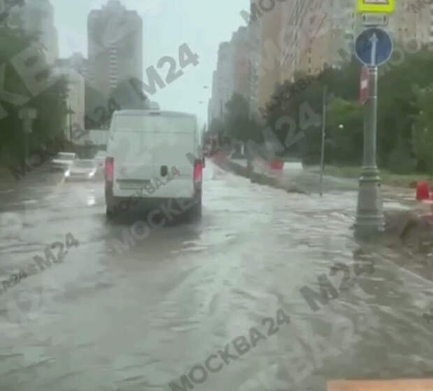 "Море в Москве, плывем. Вот такая вот тут история. Это у нас улица Главмостроя. Что-то, видимо, не работает", - сообщил водитель.