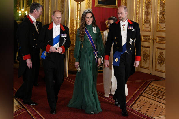 На мероприятии появились король Карл III и королева Камилла, Кейт Миддлтон и принц Уильям и другие члены королевской семьи. Принцесса Уэльская предпочла изумрудное платье-макси Andrew Gn, которое дополнила тиарой "Узелки любви", серьгами и блестящим клатчем. Образ Кейт Миддлтон завершила туфлями с декором Manolo Blahnik, которые любила носить Кэрри Брэдшоу.До этого принцесса Уэльская посетила парад Ирландской гвардии в честь Дня святого Патрика в Олдершоте. Кейт Миддлтон выбрала для торжественного мероприятия изумрудное пальто Alexander McQueen с кожаным поясом, черное платье, сапоги на каблуках, шляпку-таблетку и шурф. Принцесса Уэльская также надела серьги Asprey London с изумрудами и бриллиантами. Жене принца Уильяма уложили волосы под головной убор и сделали макияж. Она на мероприятии вручила традиционные веточки клевера офицерам.